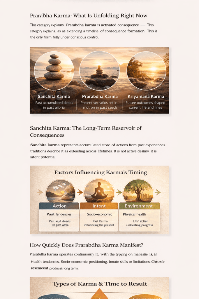 Understanding the types of karma is not about predicting fate. It is about learning how consequences unfold, why some results arrive immediately while others wait years or lifetimes, and how present choices shape outcomes long before they become visible.