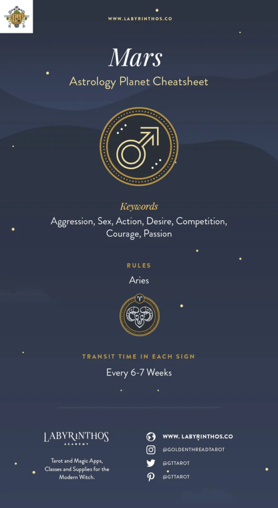 Mars governs action, initiative, and raw drive. Aries reflects Mars’ decisive and competitive qualities.