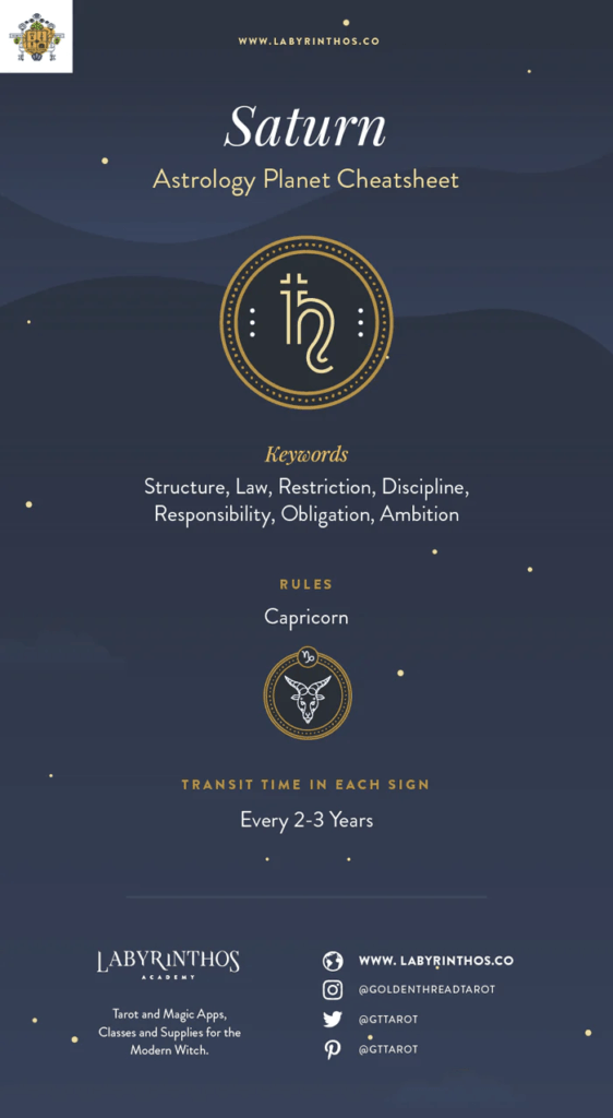 Saturn rules structure, discipline, and responsibility.